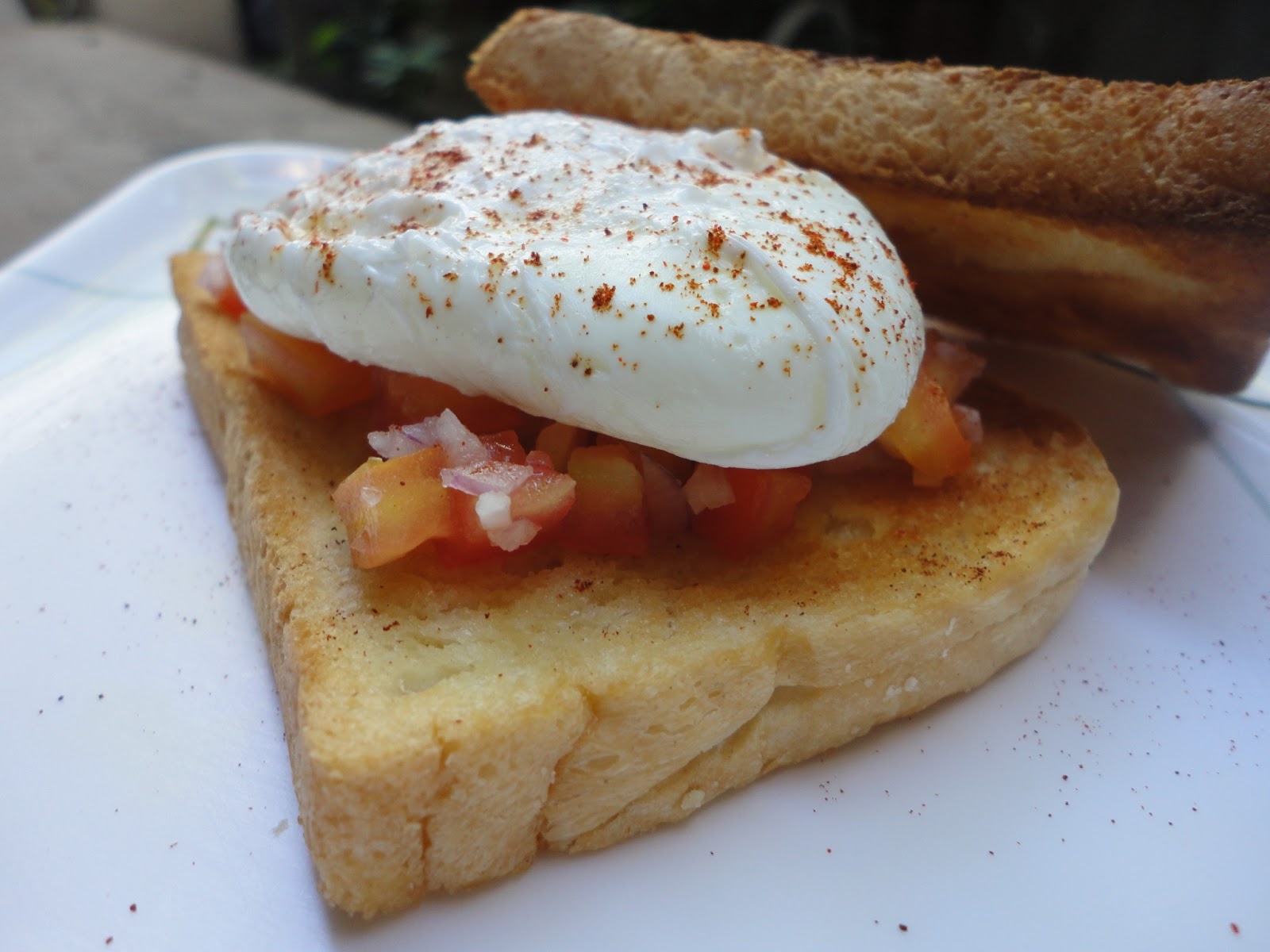 4. To Assemble: Place the salsa on the toasted bread. Top with the poach egg and sprinkle some paprika and top with another toasted bread.