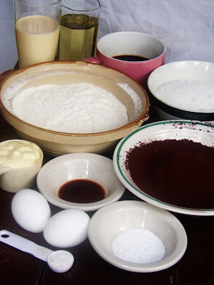 While she’s doing the laundry, I started preparing the chocolate cake.  I used mayonnaise in my chocolate cake as this gives more fats to my cake (more fats equals more moistness).  Do not worry, you won’t be able to taste the mayo.  Since I like my icing to be sticky and a bit creamy and milky, I used a recipe using condensed milk and chocolate.