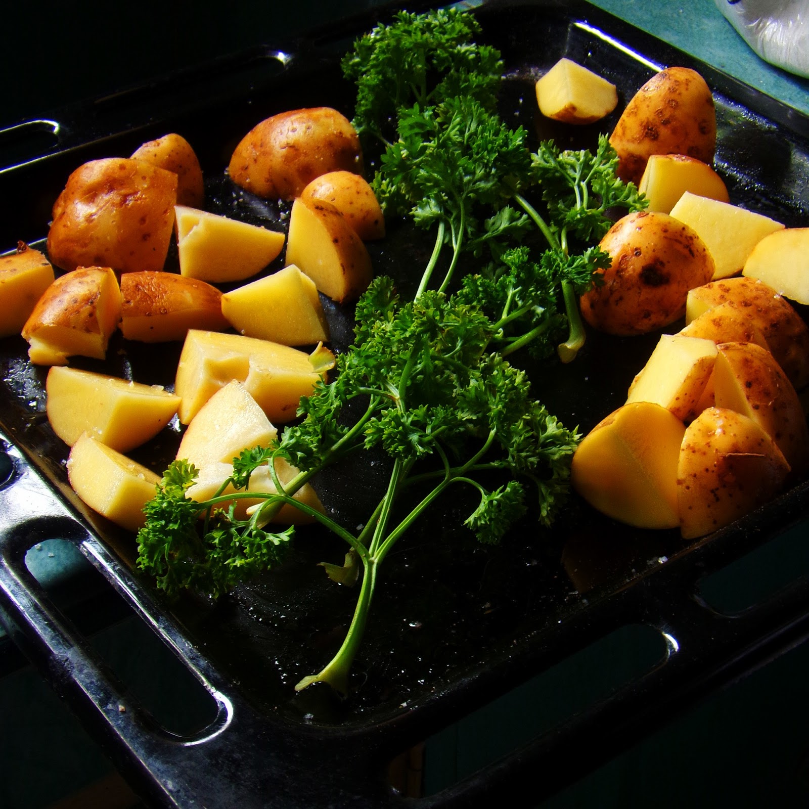 2. Season with Italian seasoning, salt and pepper. Add the bunch of parsley and garlic. Season again with salt and drizzle with some olive oil.