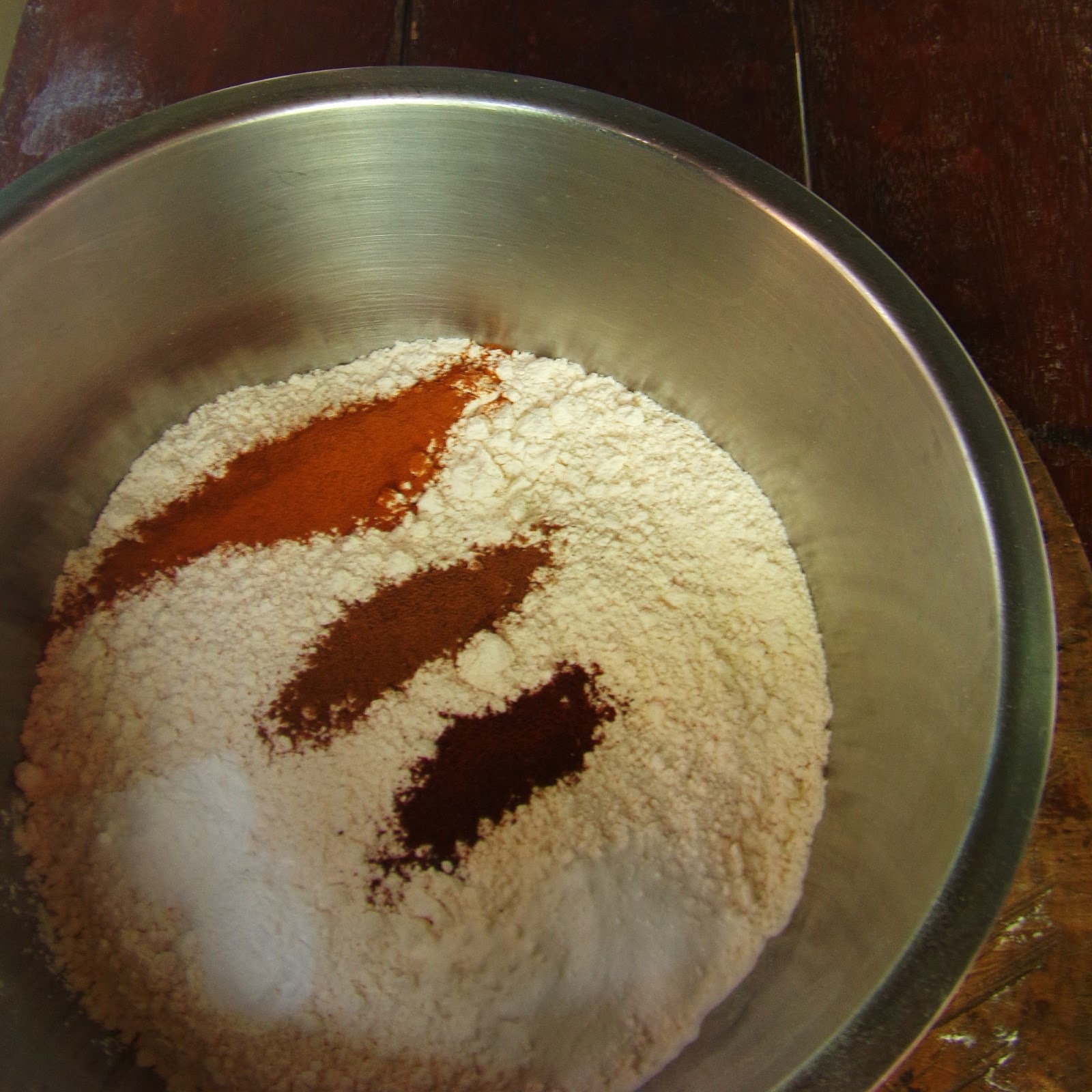 1. Preheat oven to 180 degrees Celsius. Sift together flour, baking soda, baking powder, salt, cinnamon, all spice and cloves and set aside.