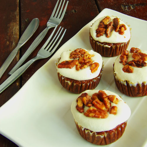 For the cupcake base, refer to Carrot Cake Loaf a la Kusina ni Teds recipe. Here are some few changes, I used a teaspoon of cloves instead of half teaspoon and I did not add walnuts to the base as I’m going to use it to top the cupcakes. For the Cream Cheese Frosting please refer to Joy of Baking‘s recipe of Carrot Cake but instead of using a teaspoon of lemon zest, I only used zest of one lemon. Finally, I scoop about a tablespoon of the frosting on a cupcake and added roasted walnut, I did not bother to chopped it as for those who does not like walnut, they could easily remove it.