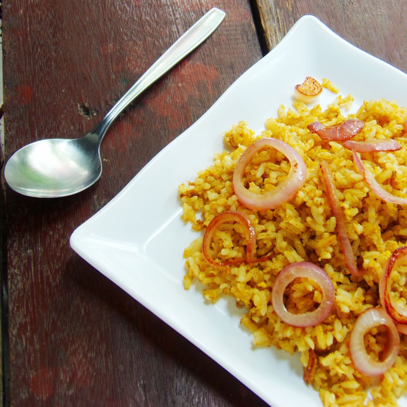 The curry fried rice is full of flavor and aroma of the curry powder. I like the way the curry powder adds spice to the dish. The caramelized onion is wonderfully adds sweetness to the spicy flavor of the curry.