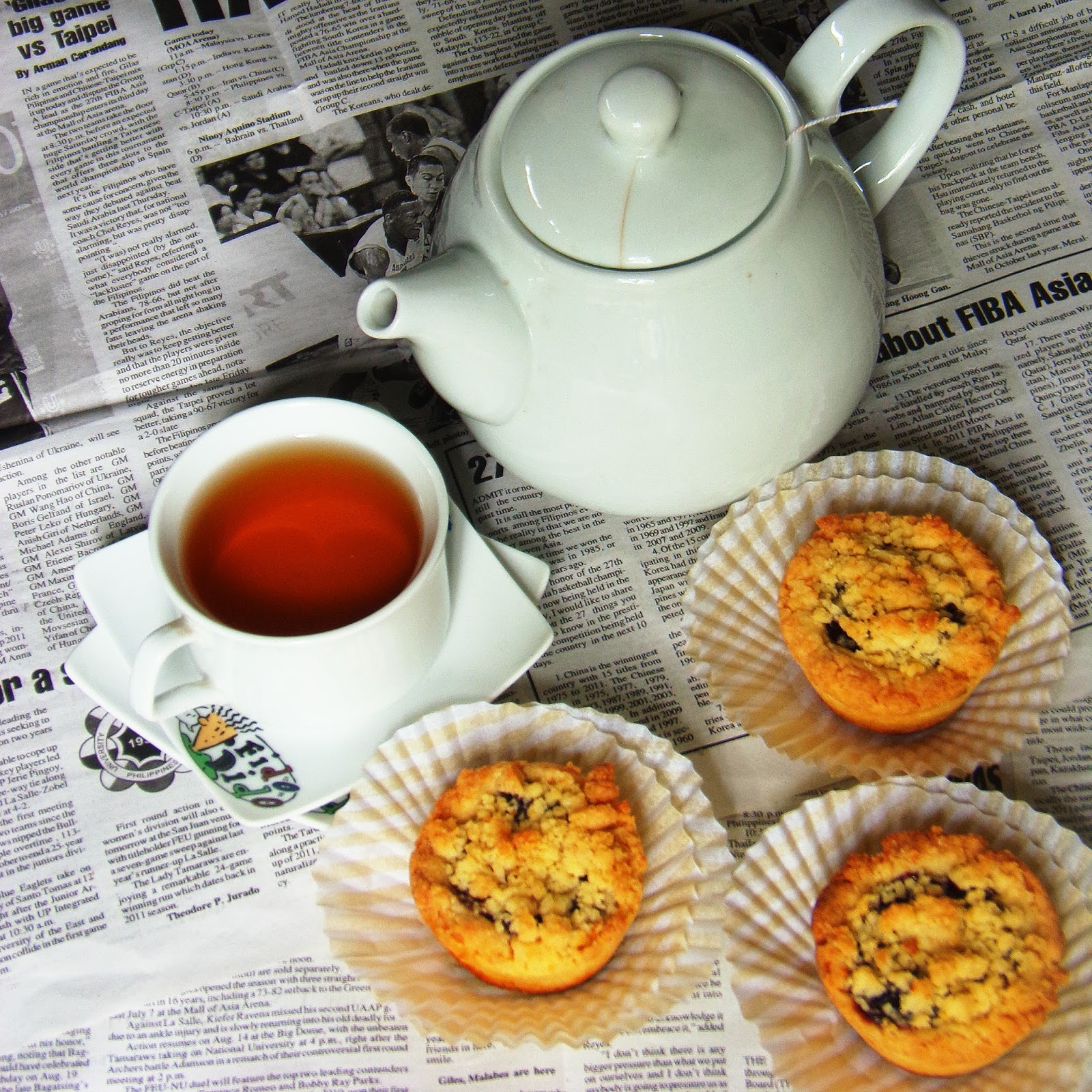 Since I fell in love with the sweet buttery and lemon zest flavor of the Peach Mango Crumb Bar, I used its base but instead of a cup of oatmeal I used a cup of flour. Luckily last Friday night, I was able to find a can of blueberry. With every ingredients on my hand and readily available, its time to try that blueberry crumb bars. Oops, did I say bars? Well, what I did was Blueberry Mini Crumb Pie. I got my 2 ounce silicon muffin pan and carefully pressed down my crumb made deliciously with lemon zest and a good quality butter. I took a teaspoon or two of the blueberry fillings and bake it in the oven until the crumbs turned golden brown. Cool it for 30 minutes and savor it with a cup of tea.