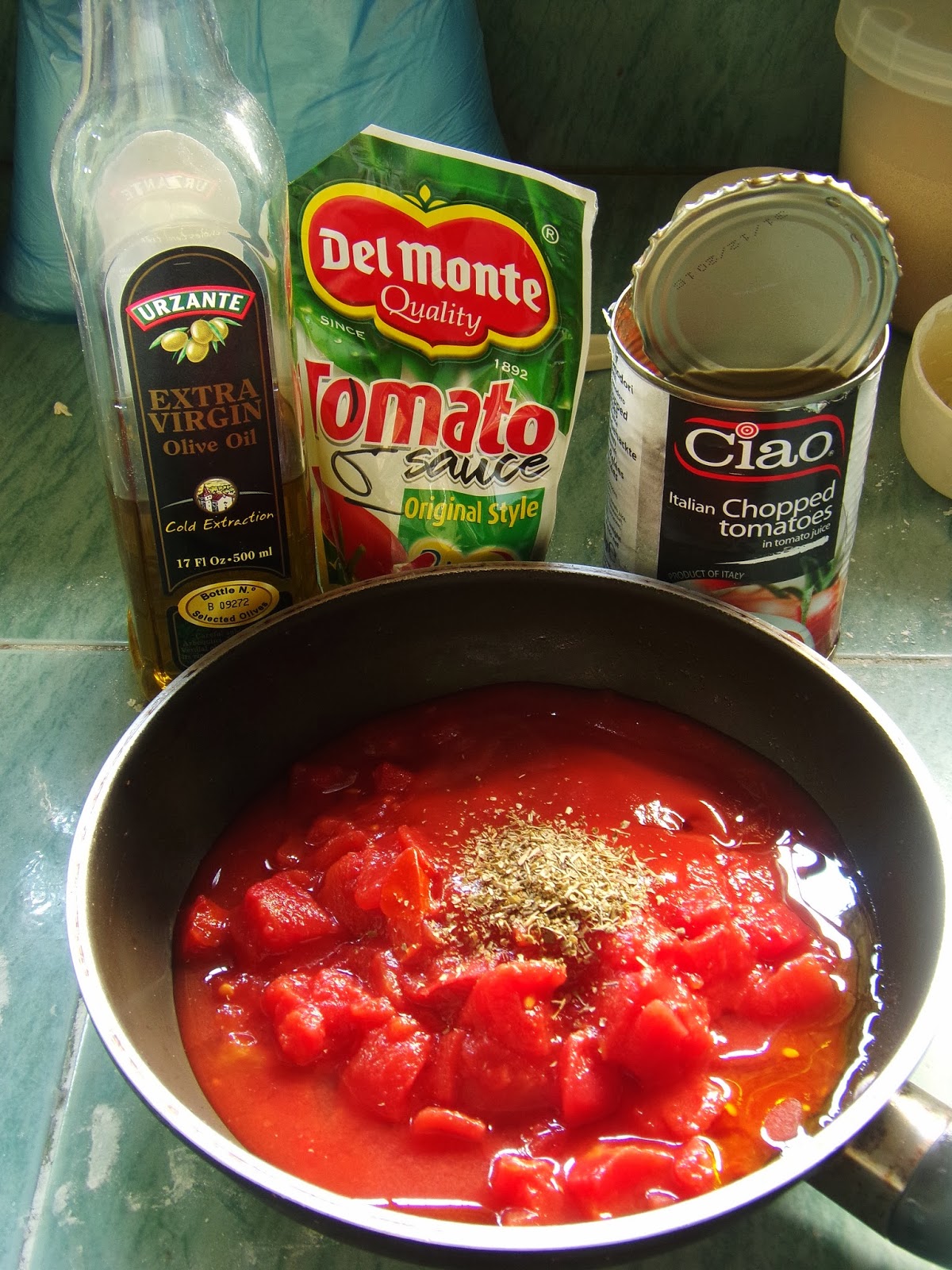 I added a quarter cup of tomato sauce to the Marinara sauce to have a thicker consistency. I observed that using canned diced tomatoes produces a thinner or watery type of Marinara sauce. I could have use tomato paste but tomato sauce is much more available in our home.