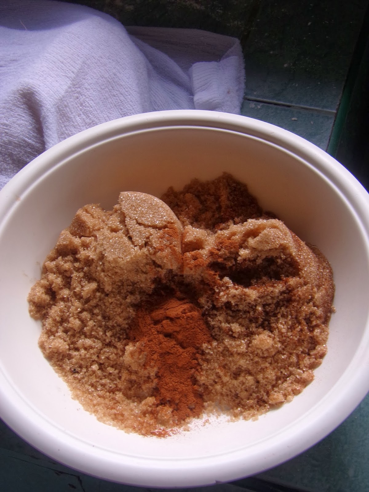Mix brown sugar and cinnamon together. I just simply use my hands in combining these two wonderful ingredients.