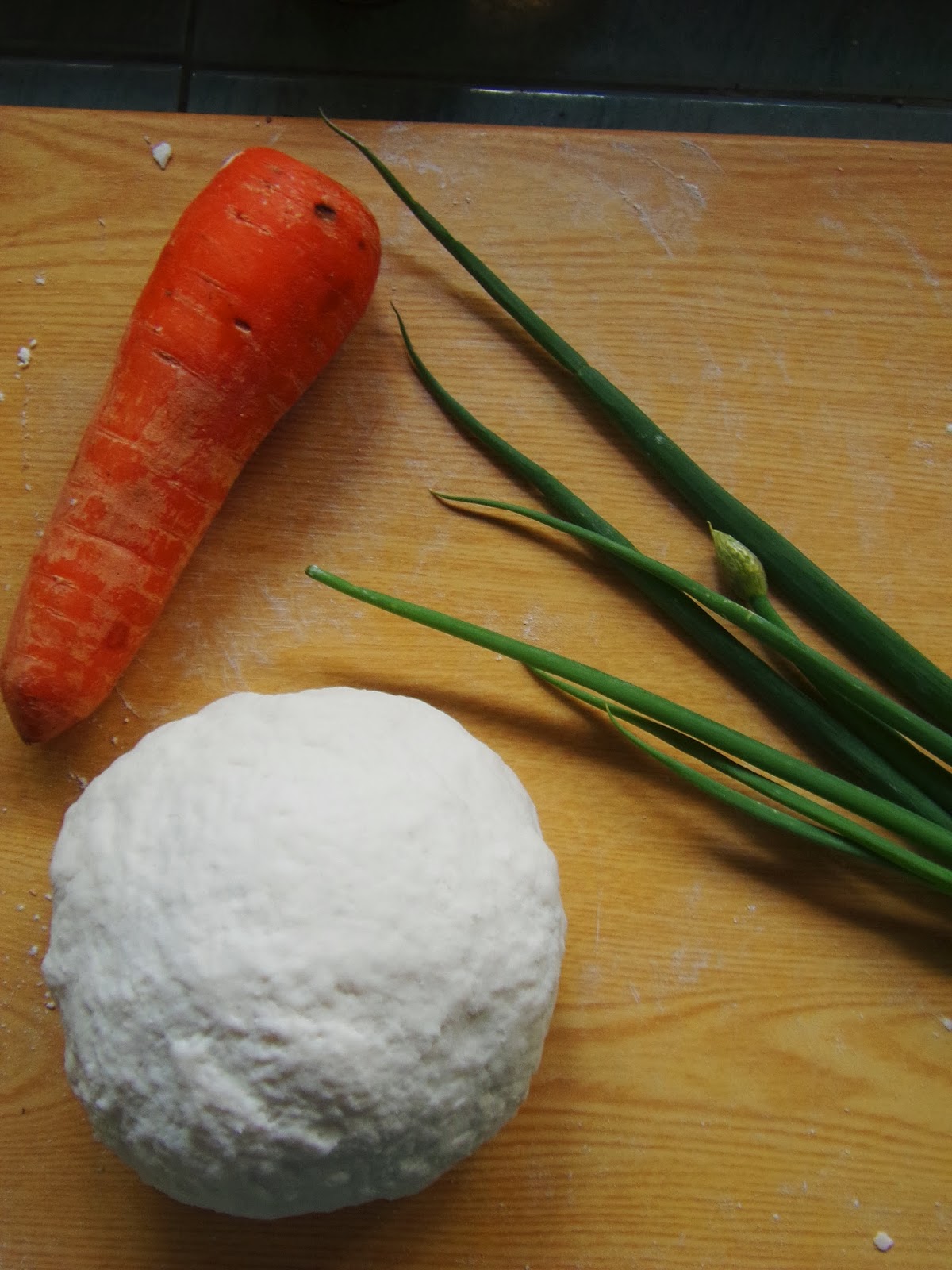 This afternoon, after doing my usual weekend choir, I decided to make this dish. When I woke up my dad already went to the market and luckily he bought scallions for our lunch. I asked him to spare some of the scallions but still it’s not enough. My available scallion is about a fourth of a cup which is by far to 2 cups needed for the recipe. I searched for an alternative in our fridge and found this lonely piece of carrot that’s been sitting in the fridge for a week now and waiting to dry out. I grabbed the carrot and quickly used my imagination.
