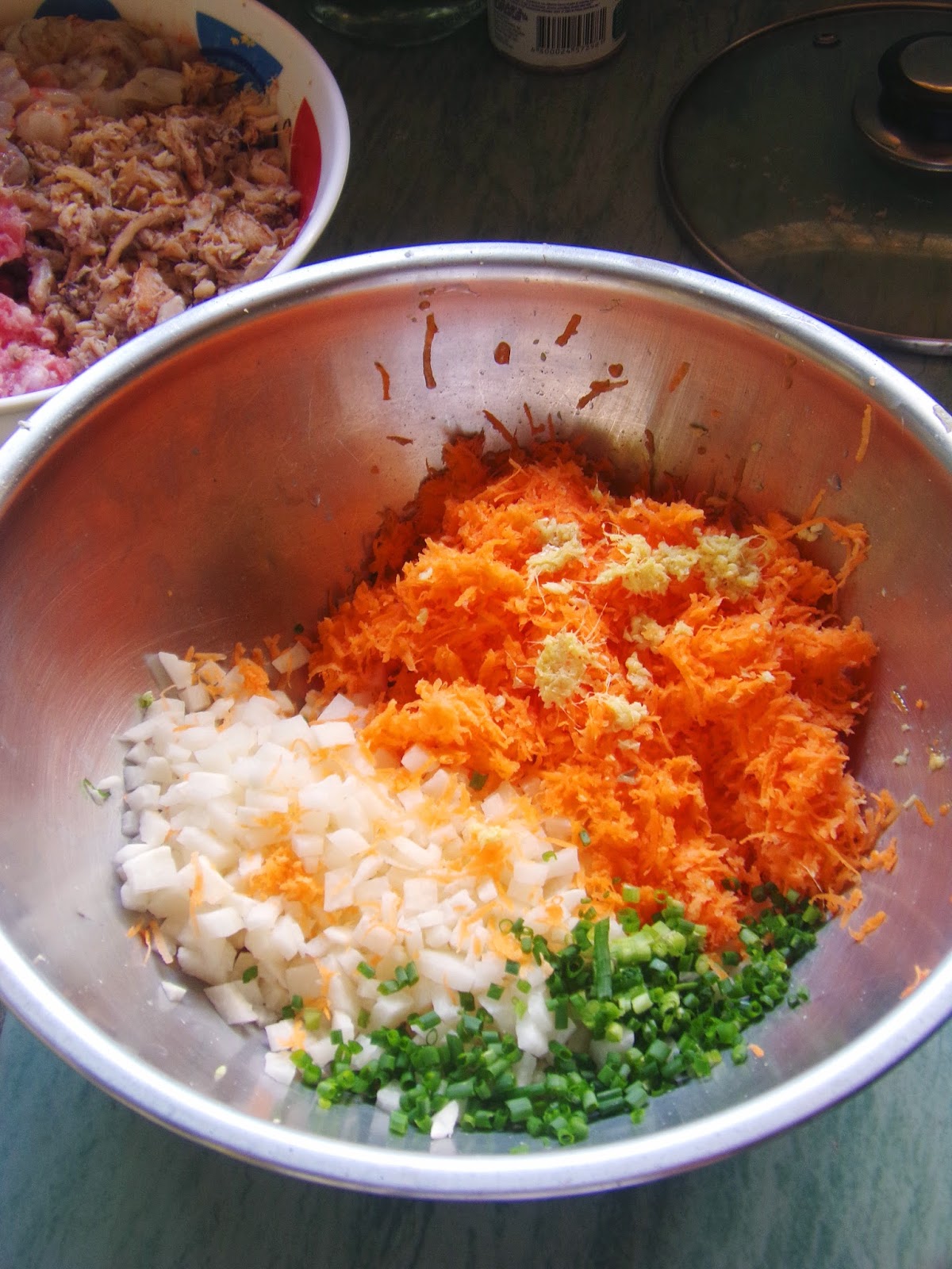 Since yesterday, I don’t know why but I started to crave on siomai or pork dumplings. So I decided to make my own pork siomai. Just imagining doing my own siomai, my mind automatically lists ingredients that I would enjoy putting in my recipe. I’m imaging putting roughly chopped shrimps, some shredded carrots, some chopped yam bean (singkamas) for added crunch, and shredded crab meat. Yes! Crab meat is not usually put in siomai recipes but I found its meat to be tasty that’s why I’m adding some. Luckily, I don’t have to buy crabs to get its meat. There’s a vendor in our local market selling shredded crab meat, about Php120.00 per quarter kilo. It’s real crab meat not the process one. You could still see some broken shells in it so just meticulously remove those puny bits of shells.