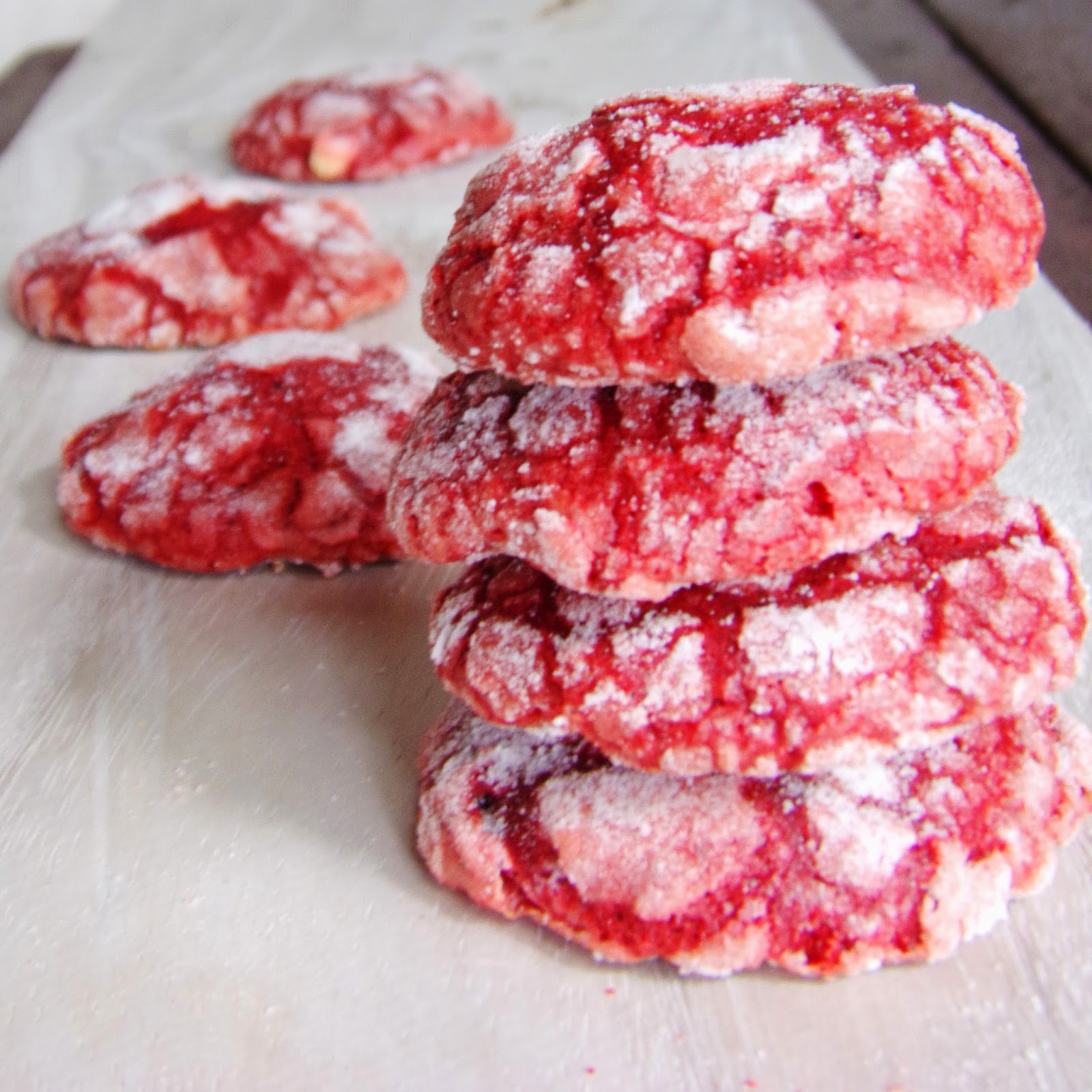 Sift icing sugar in a bowl. Scoop the red velvet crinkle batter batter using a 1 ounce ice cream scooper. Roll it on the icing sugar and place on a baking pan lined with baking paper. Slightly press the batter and bake for 12 minutes. Remove the batch form the oven and let it cool on the pan for another 5 minutes before transferring onto a wire rack.
