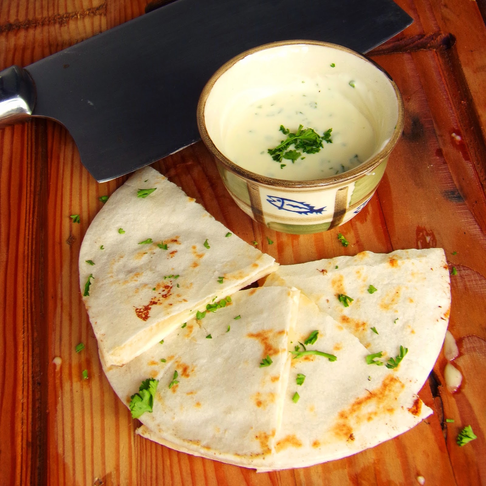 For the sour cream dip, simply combine sour cream and chopped parsley and served with quesadilla.