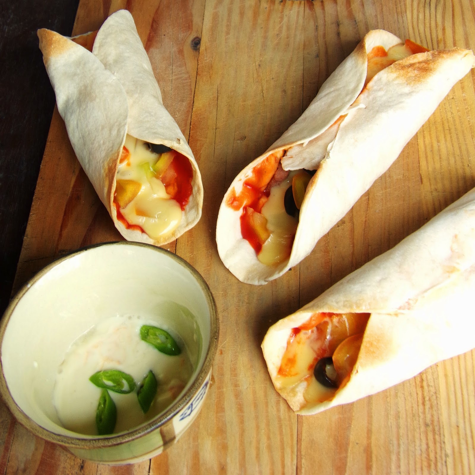 Combine sour cream and chili and serve with baked Rolled Pizza Burger Pita.